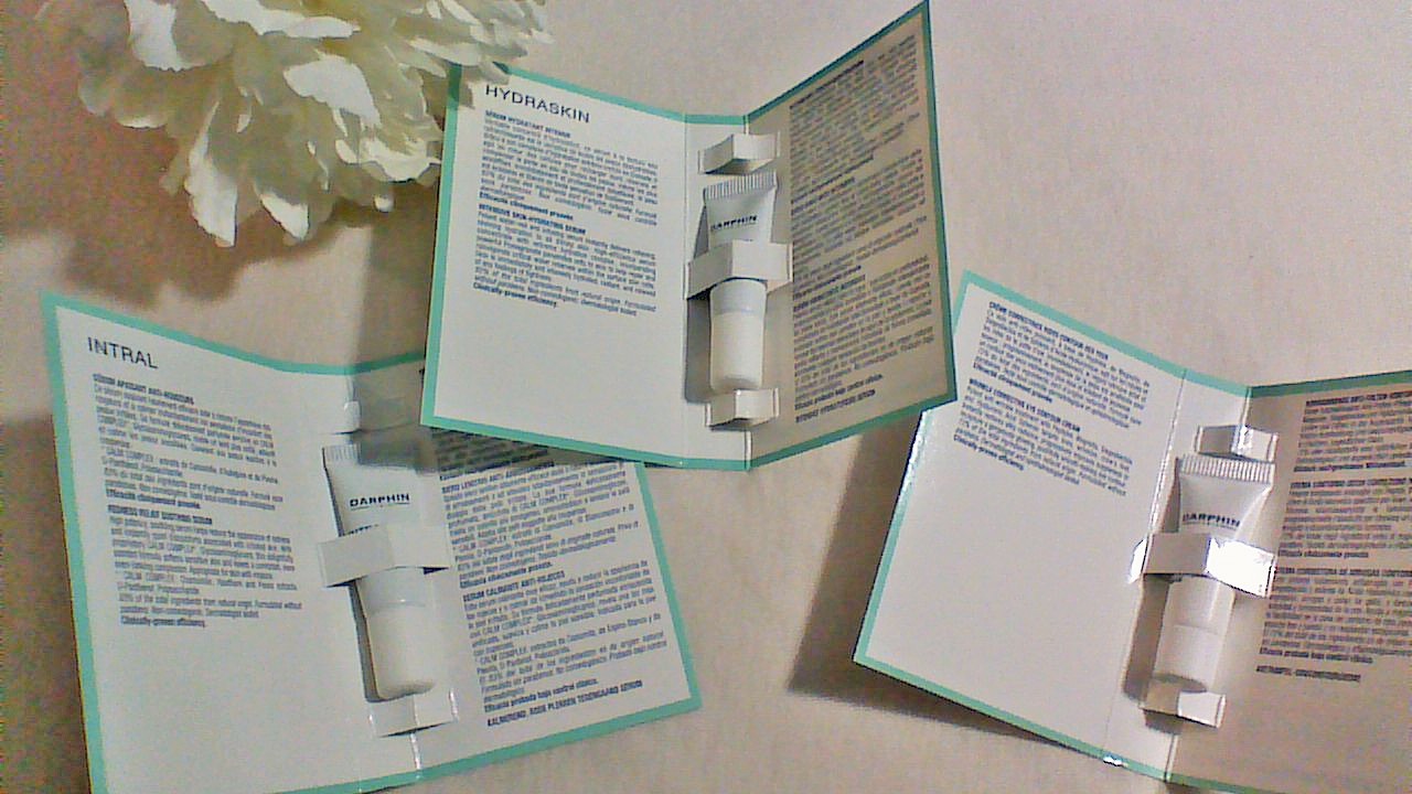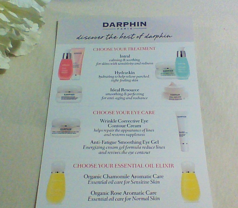 Darphin is offering this kit so that we can give it a try. Darphin owned by Estee Lauder but I never tried Darphin before and do not have their store nearby. I did this deal earlier and I would like to share a very first unboxing and a very first mini-review of my blog. This is a card that shows you products in this kit -choices of treatment, eye cream and essential oil.