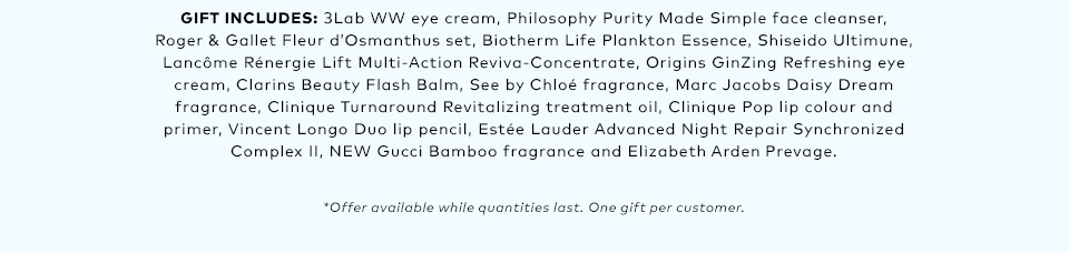 Current Gift with Purchase from Clinique, Estee Lauder and Lancome
