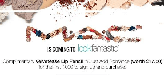 Look Fantastic UK (NEW) offers free MAC gift with purchase for the first 100 customers who sign up and purchase!