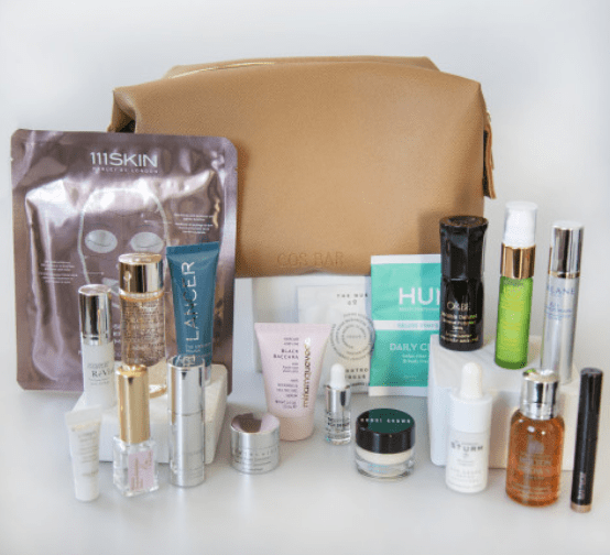 Gift includes: Tata Harper – Waterlock Moisturizer 10mL Chantecaille – Stress Repair Concentrate 3mL Clé de Peau Beauté – Hydro-Softening Lotion 30mL/1oz Sisley – Sislea L’Intégral Eye Deluxe Sample 2mL Orlane – B21 Extraordinaire 7.5mL Dr. Barbara Sturm – Sun Drops 10mL Maison Francis Kurkdijian – l’eau A la rose 5mL Bioeffect – EGF Serum 3mL/0.1 fl oz Oribe – Invisible Defense Universal Protection Spray 20mL RéVive – Intensite Face Serum 5mL Bobbi Brown – Vitamin Enriched Face Base 7mL Hum – Daily Cleanse 3 Day Deluxe Packet Molton Brown – Heavenly Gingerlily Bath & Shower Gel 30mL 111Skin – Rose Gold Brightening Facial Treatment Lancer – Polish Deluxe Sample Sisley – Black Rose Skin Infusion Cream 4ml Laura Mercier – Caviar Stick in Amethyst Deluxe Sample Miriam Quevedo – Black Baccara Hair Repairing & Multiplying Serum 20mL Tom Ford – Badass Lash Mascara 8mL The Nue Co – NOOTRO-FOCUS Daily Doses x 2 Cos Bar – Camel Side Snap Cosmetic Bag
