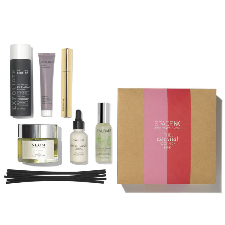 Shopping from outside the UK? This international version of the Essential Box for Her features one slight variation – the Living Proof Dry Shampoo aerosol has been replaced with a flight-friendly Living Proof Restore Repair Mask.