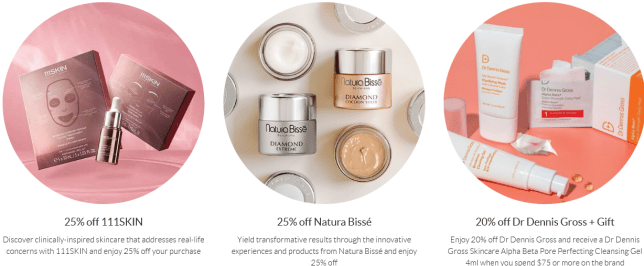 Top brands: | BeautyStat | BioEffect | Decorte | DHC | Elizabeth Arden | Erno Laszlo | Grow Gorgeous | NuFace | Obaki | Pixi | SkinCeuticals | Sunday Riley | The Ordinary| Lululun | Vichy |