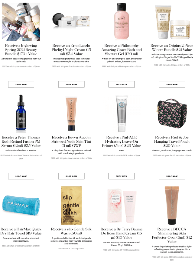 Receive a free 15pc b-glowing Beauty Bundle valid on orders $200 of full-priced merchandise, no promo code needed. B-glowing is also having 20% off any $50 purchase use code BGFLASH. At Feelunique UK and Feelunique Inter get a free Feelunique 18pc goody bag with 120 GBP purchase plus 12 new beauty gift with purchase offers.