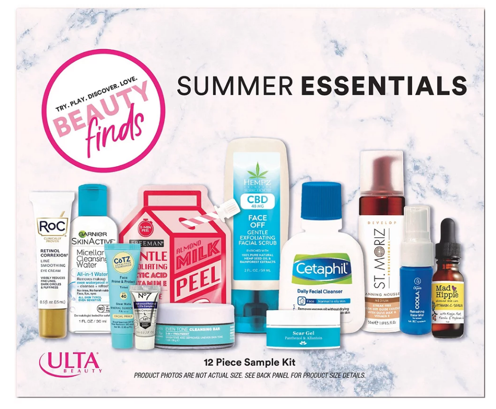 (NEW) Beauty Finds by ULTA Beauty Summer Essentials Kit $18.99 – 12-piece beauty box. Includes: