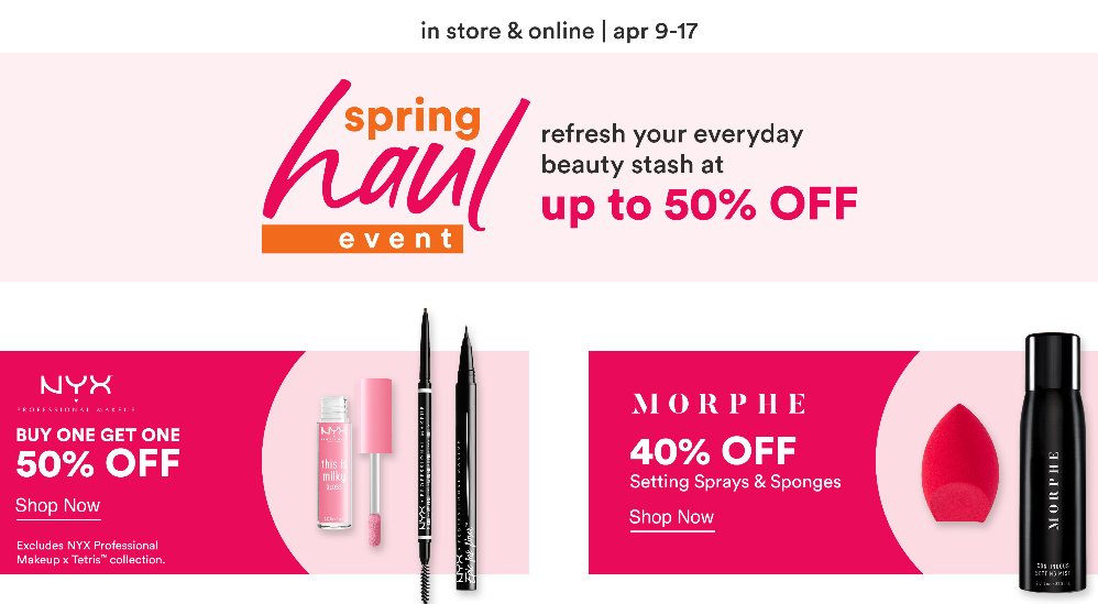 Ulta Spring Haul Event 2021 has begun April 9 – April 19, get up to 50% off at Ulta.com/spring-haul.