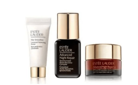 (NEW) Receive deluxe samples of The Smoother Universal Perfecting Primer (0.17 oz.), Advanced Night Repair Synchronized Multi-Recovery Complex Serum (0.23 oz.) and Advanced Night Repair Supercharged Complex Eye Cream (0.1 oz.) with your $75 Estee Lauder purchase.