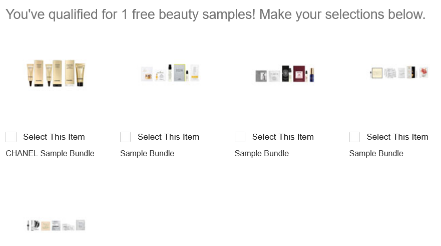 (NEW) Choose free sample bundle with any $50 beauty purchase. E.g., sample bundle includes: