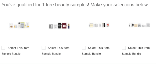 Choose free sample bundle with any $50 beauty purchase.