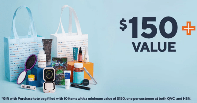 According to QVC, As a thank you for your support, score this tote bag with your Beauty with Benefits order. It’s filled with 10+ items from brands you love—think Too Faced, June Jacobs, WEN by Chaz Dean, & Josie Maran (just to name a few). And it all clocks in at a minimum value of $150. While supplies last. One per customer.