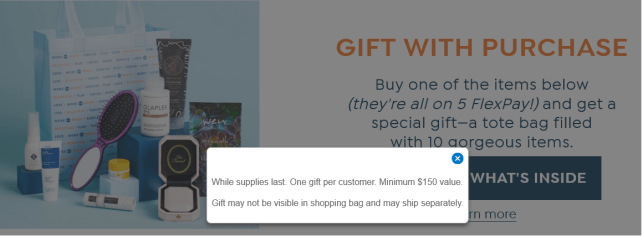 I highly recommend: live chat with their customer service to confirm your order qualifies for the gift bag before checkout!