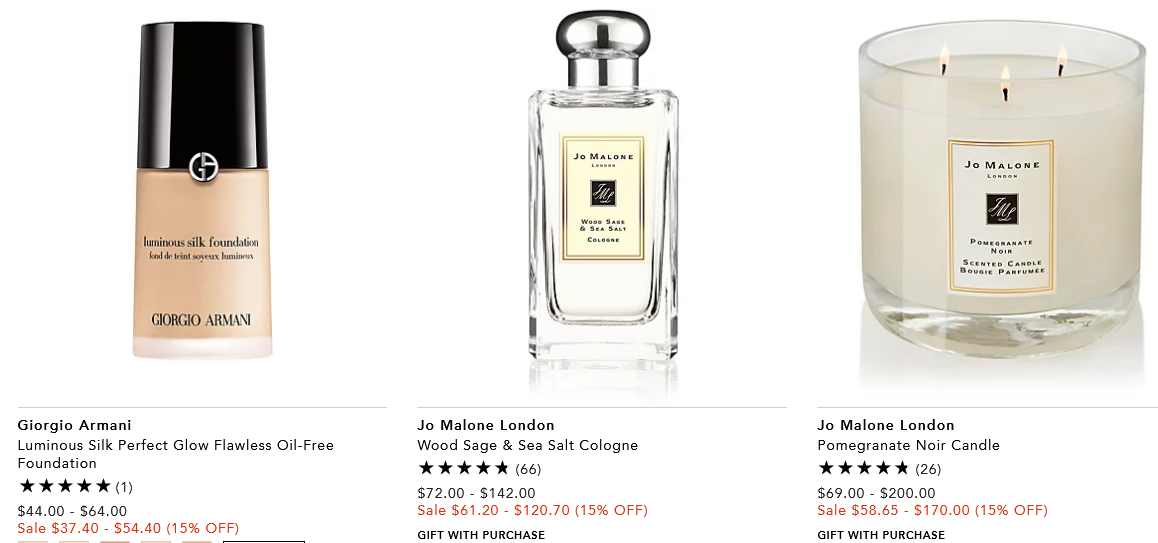 - Bloomingdales – 15% – 25% off beauty (2.8K+ items) including Jo Malone, Charlotte Tilbury, Hourglass, COOLA, Kiehl’s, YSL, NARS, MAC, Trish McEvoy, Laura Mercier and more. (NEW) There are 69 beauty gift with purchase here.
