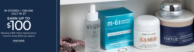 Bluemercury (NEW) Receive a free $20 client appreciation card for every $100 you spend including La Mer, M-61 or SkinCeuticals! Offer valid 7/16-7/27.
