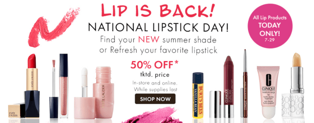 Best department stores National Lipstick Day 2021 deals and Free Gift with Purchase are at the following retailers: