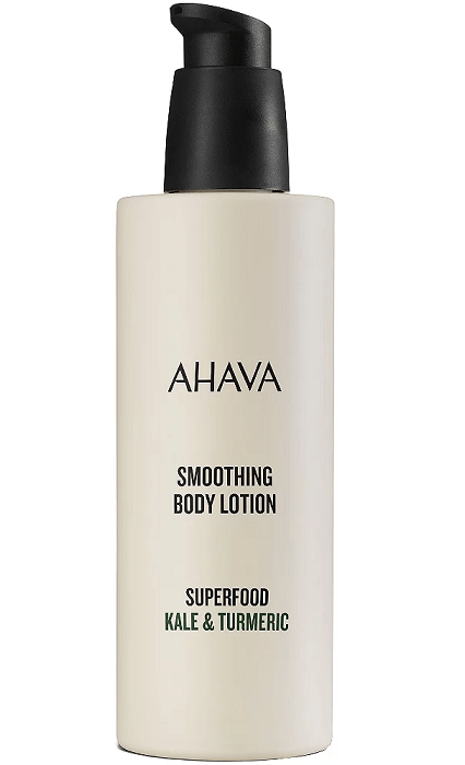 AHAVA’s ultra-hydrating Superfood Kale & Turmeric Smoothing Body Lotion puts the antioxidant superpowers of kale and turmeric to work. The soft texture of this lotion deeply hydrates and safeguards skin from premature signs of aging, while smoothing the skin’s surface.