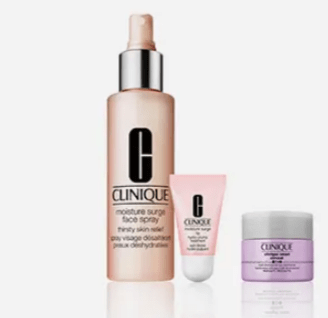 When you spend $85 on Clinique, you’ll also receive Moisture Surge Face Spray Thirsty Skin Relief (full size, 4.2 oz.), Moisture Surge Lip Hydro-Plump Treatment (0.23 oz.) and Smart Clinical MD Resculpt Moisturizer (0.5 oz.). A $125 value.