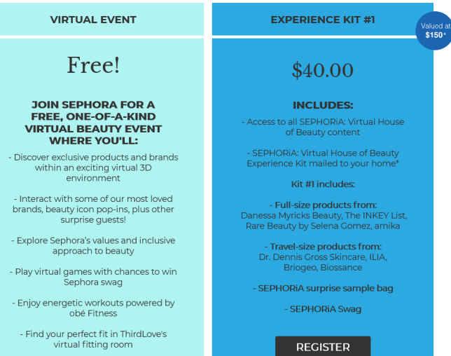 – SEPHORiA: Virtual House of Beauty Experience Kit mailed to your home*