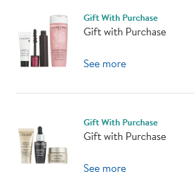 (NEW) GIFT 1: Receive deluxe samples of Advanced Génifique Eye Cream (0.1 oz.), Monsieur Big Mascara (0.06 oz.) and Tonique Confort Comforting Rehydrating Toner (1.7 oz.) with your $50 Lancome purchase.