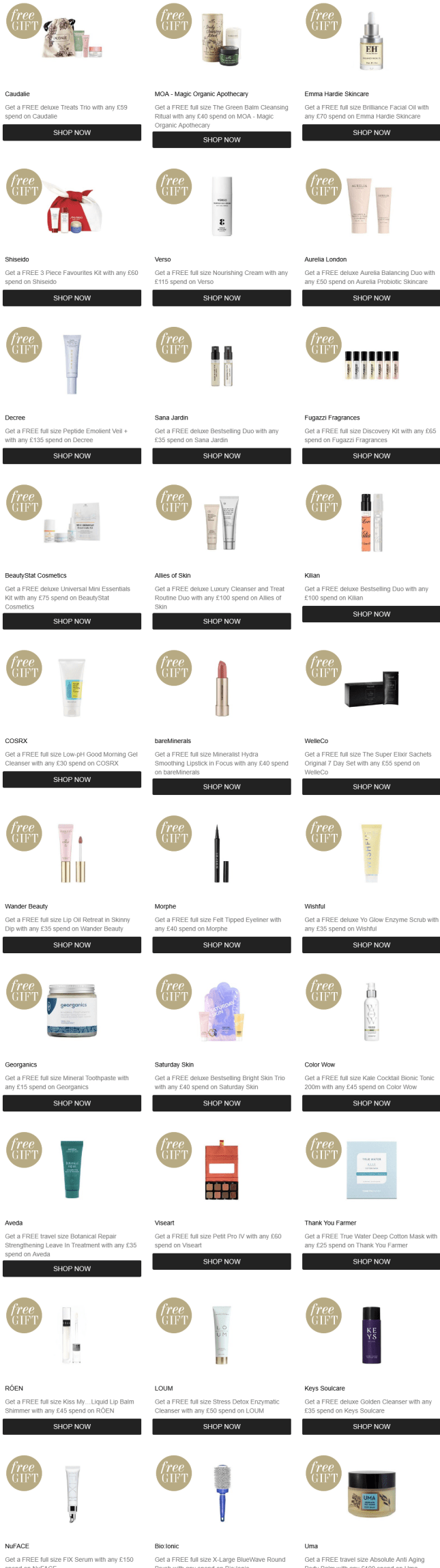 111Skin | Alpha-H | Anastasia Beverly Hills | Becca | Benefit | BLEACH London | Briogeo | By Terry | Charlotte Tilbury |Dr Barbara Sturm | Dr Dennis Gross | Disciple | Drunk Elephant | Emma Hardie | FARMACY | Fresh | Glow Recipe | Herbivore | HOURGLASS | Huda | Iconic London | Indeed Labs | IT Cosmetics| Jordan Samuel Skin| Emma Hardie | La Mer | Laura Mercier | Lime Crime | Milk Makeup | MGC Derma | Morphe | NARS | Natasha Denona| Nurse Jamie | NYX | NYX and Farmacy | Olaplex | Omorovicza | Pixi x Caroline Hirons | Pixi | Shiseido | SkinOwl | Su-Man| Sunday Riley | Surratt Beauty | SUQQU | THE INKEY LIST | The Ordinary | TONYMOLY | Tata Harper | Uma | VENeffect | Violet Voss | Viseart | Westman Atelier | Zelens | Zoeva