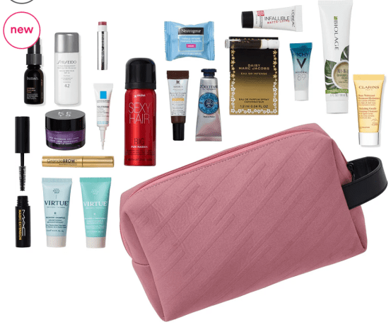 OR Free Pink 18 Piece Beauty Bag with $80 purchase ($120 value).