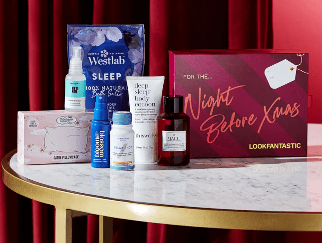 LOOKFANTASTIC Gift Guide The Night Before Box 2021 $55.20 Pre-order now, ships Oct 29.