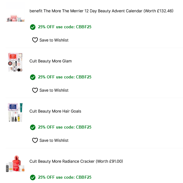 Cult Beauty (NEW) 25% off on a large selection of beauty use code CBBF25. Including Cult Beauty Box!
