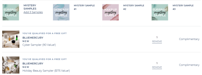 Choose 3 free samples at checkout with any order no minimum! It’s combinable with all Bluemercry Gift with Purchase offers! Free shipping all order no minimum.