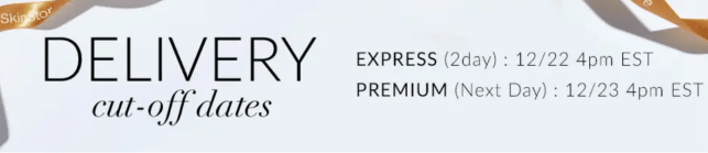 - Right now at SkinStore, you’ll get FREE 2-day shipping for guaranteed delivery before XMAS when you spend $80 Use Code: EXPRESS. Shop by 12/23 4PM EST for Overnight Shipping before Christmas!