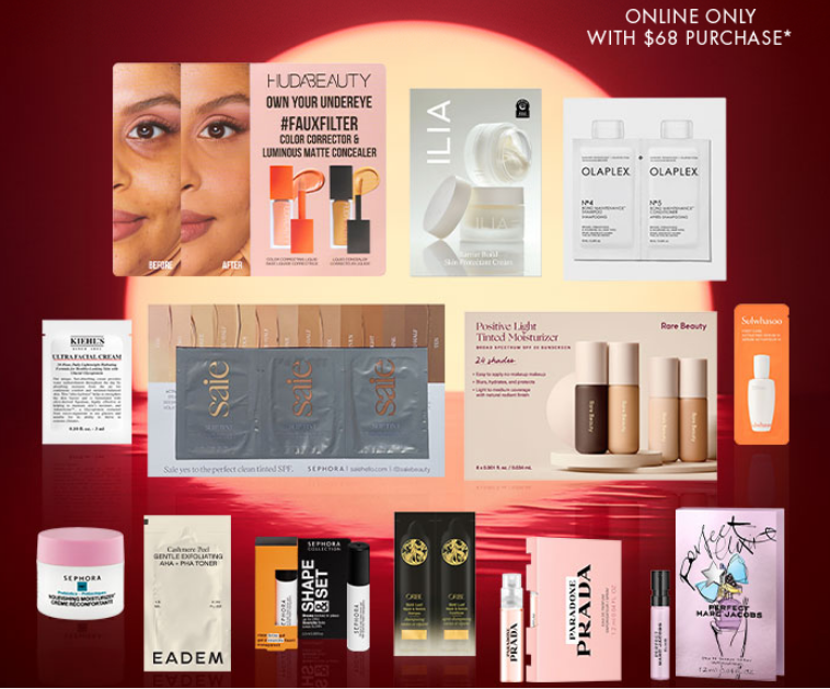 See Sephora coupons. There are new items in the SEPHORA Rewards Bazaar, you can use Sephora points to redeem for free. Pick two free samples with any purchase (no minimum) here. See Sale page here. See all available kits at Sephora Favorites, Sephora Favorites Canada or Sephora Favorites at Kohl’s.