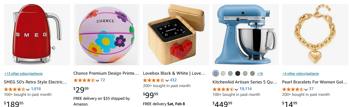Amazon (NEW) The Valentine’s Day Shop is open – see top 100 gifts here.