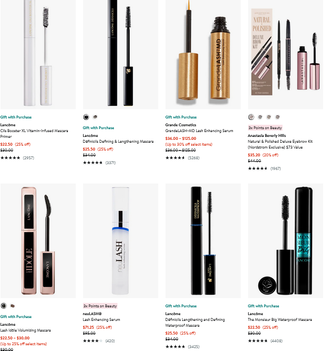 - NORDSTROM -Free 14-piece Nordstrom beauty gift with purchase, yours with any $275 Beauty or Fragrance purchase. Nordstrom’s 30% off mascara and eye makeup deals here (100+ deals).