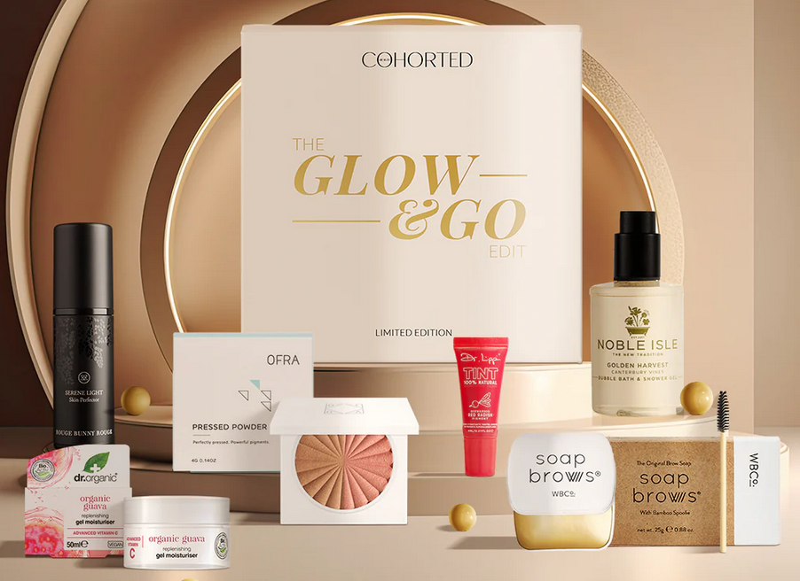 Cohorted Beauty (NEW) Glow & Go Limited Edition Beauty Box for $58 Box Value: £106.03. Included in The Glow & Go Beauty Box Edit: