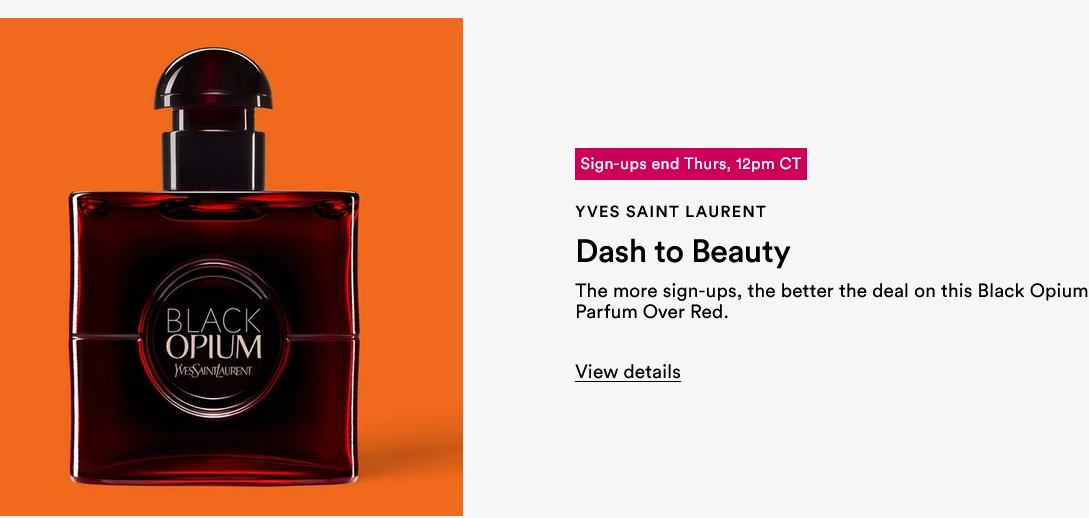 Dash to Beauty went live! Yves Saint Laurent Black Opium Eau de Parfum Over Red ($98) – up to 50% off (need to sign up).