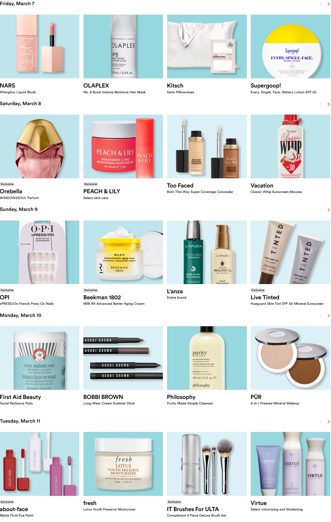- See previous Ulta 21 Days of Beauty Events.