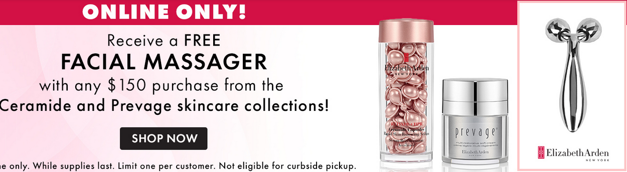 Boscov’s (NEW) Get a free 8pc mystery fragrance gift with any $65 beauty or fragrance purchase. Free 3pc gift with any Elizabeth Arden Prevage purchase. Get a facial massager with any $150 Elizabeth Arden Prevage or Ceramide skincare purchase. Explore all beauty gift with purchase. Free shipping on any $49 beauty purchase.