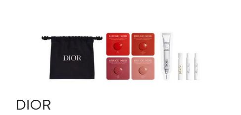 Receive a small drawstring pouch and deluxe samples of Rouge Dior Lipstick in Shades 999 Satin, 777 Fahrenheit Velvet, 720 Icone Satin and 100 Nude Look Velvet (0.001 oz. each), Capture Totale Hyalushot: Wrinkle Corrector with Hyaluronic Acid (0.03 oz.), J’adore Eau de Parfum (0.03 oz.), Miss Dior Parfum (0.03 oz.) and Miss Dior Blooming Bouquet Eau de Toilette (0.03 oz.) with your $175 DIOR beauty or fragrance purchase.