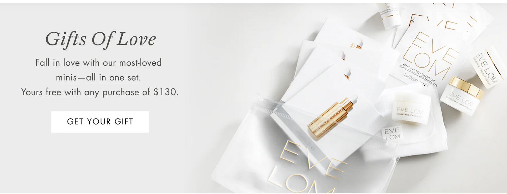 EVE LOM Â (NEW) Get 28% off Sitewide coupon code ULTIMATE28. Plus, get a free 7 Piece Gift With Purchase on Orders Over $130, expires 2/28. Choose two free samples at checkout. Free shipping on orders over $50.