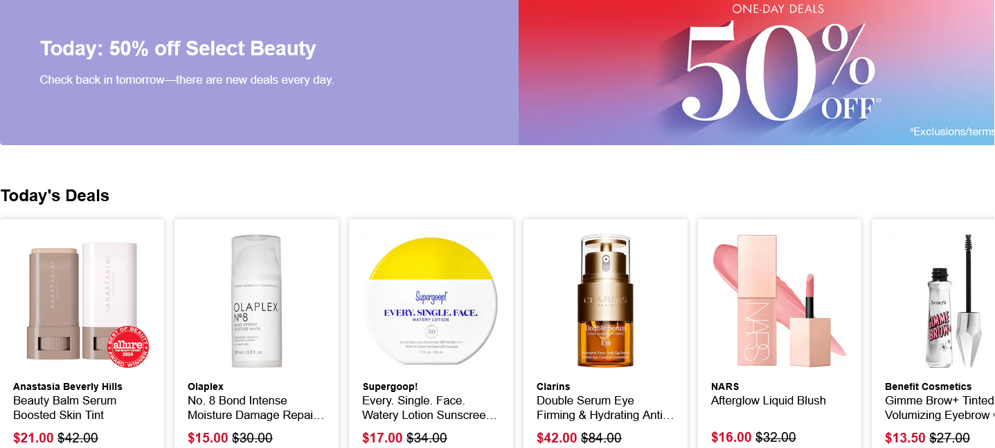 - Sephora One Day deals here (50% off select Sephora Favorites!),