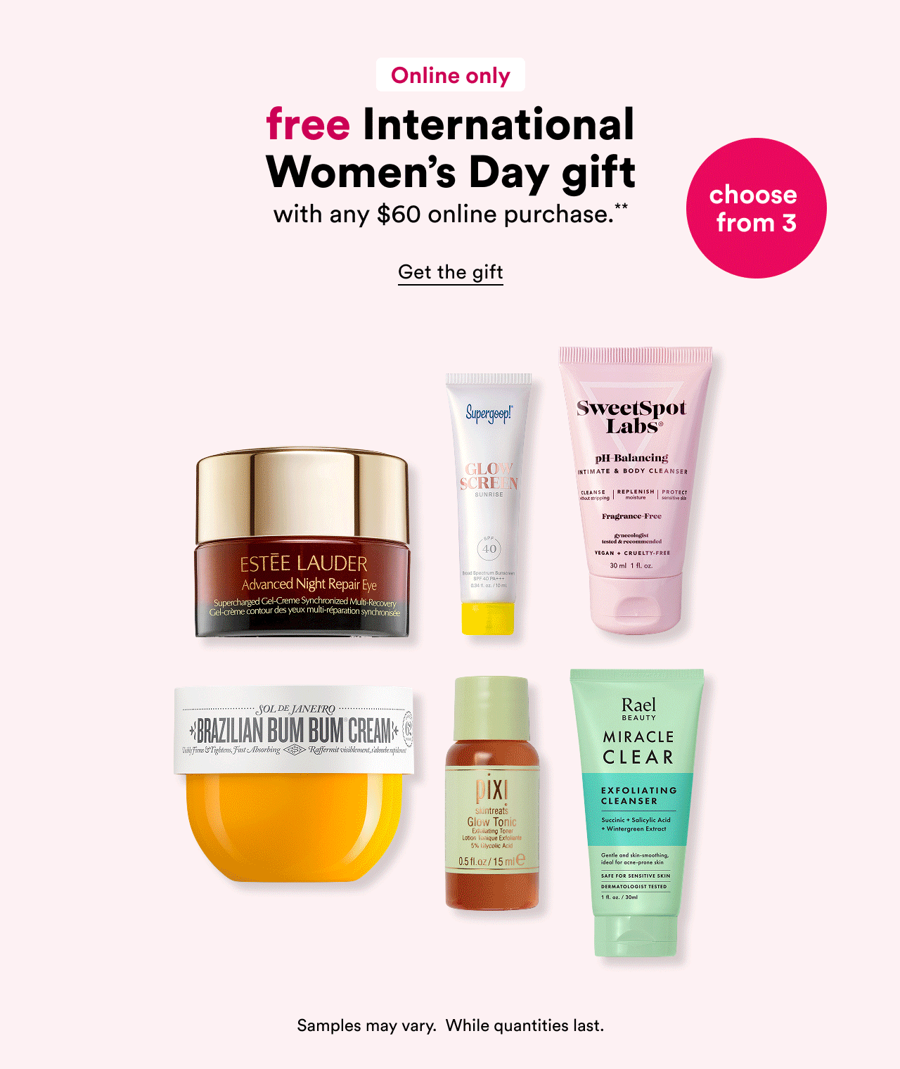 Ulta – Choose a Free International Women’s Day Gift with any $60 purchase – 3 options.