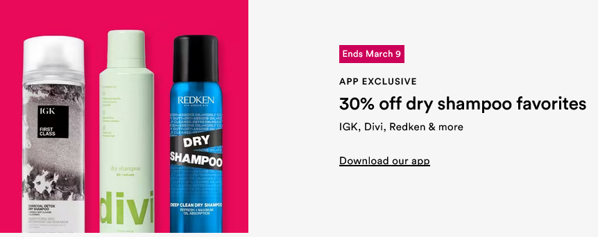 Ulta App deals March 9: Get 5x points on all App purchase + 30% off select dry shampoos.