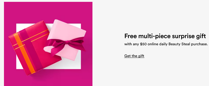 Free Multi-Piece Surprise Gift with $50 Daily Beauty Steal purchase.