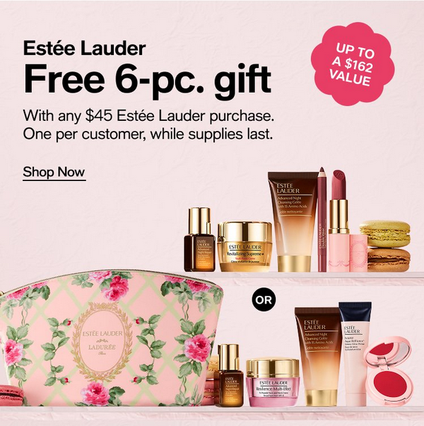 REE 6-Pc. gift with any $45 Estee Lauder purchase (Up to a $162 Value!) + two step-up gifts. Explore all 133 Macy’s beauty gift with purchase. Free 5pc gift with any $100 beauty purchase.