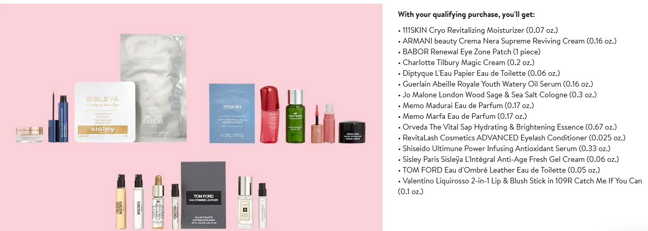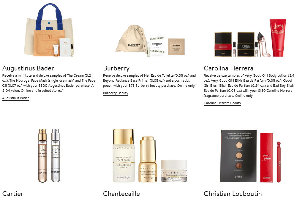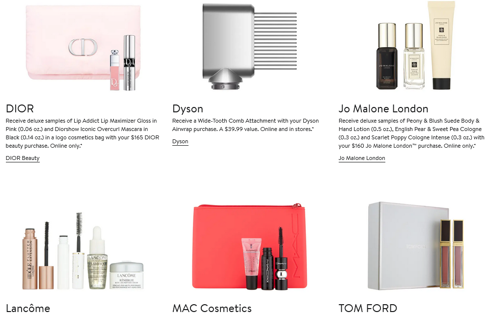 NORDSTROM – Free Gift with $275 Beauty or Fragrance Purchase. Enjoy samples of luxe skin care, makeup and fragrance—from Charlotte Tilbury, Jo Malone London, TOM FORD and more.