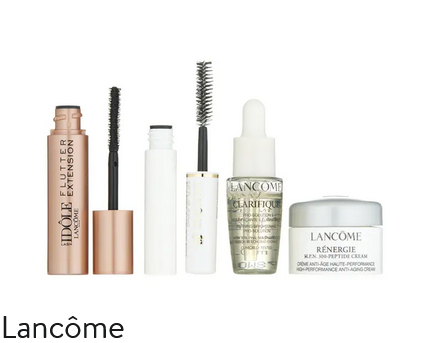 Receive deluxe samples of Lash Idôle Flutter Extension Mascara (0.06 oz.), Cils Booster XL Lash & Mascara Primer (0.07 oz.), Clarifique Refining Brightening Pro-Solution Serum (0.23 oz.) and Rénergie HPN 300-Peptide Cream (0.16 oz.) with your $100 Lancome purchase.