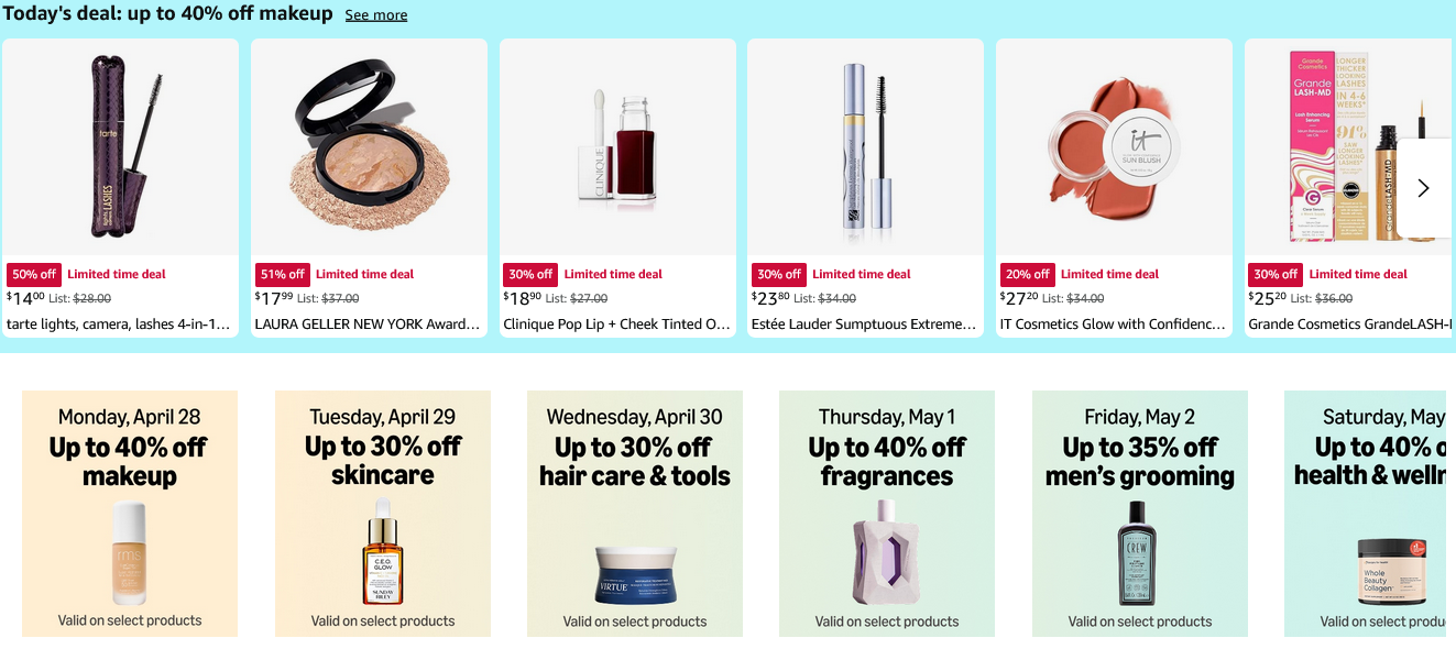 Amazon (NEW) Summer Beauty Event, get up to 35% off beauty.