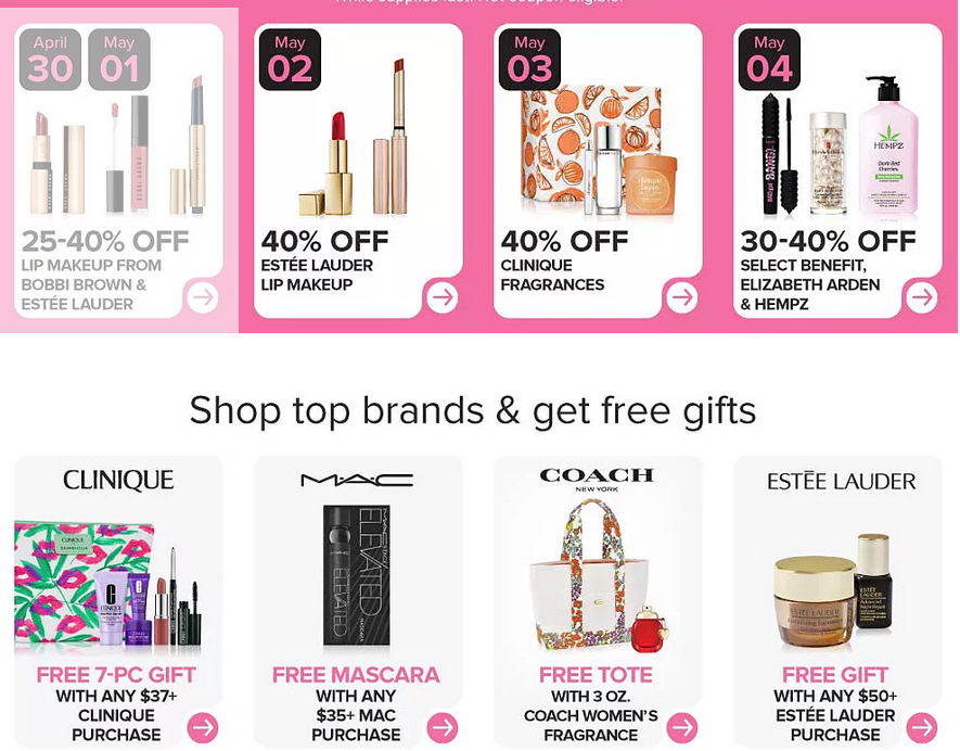 JCPenney (NEW) Very Big Deals Beauty Event has begun, get 25% off beauty products. Including brands like Olaplex, Smashbox, RMS, Cosrx — 250+ brands. Use promo codes PEONY, ILOVEMOM to get up to 30% off other depts, ends 5/25. JCPenney Beauty Always in Bloom 8-Pc Gift Set ($81 Value) for $29 +25% off. Jcpenney Beauty On The Glow Skin Set ($130 Value) $30 +25% off. Jcpenney Beauty Make It Lash Forever Mini Mascara Sampler ($61 Value) $29 – with free full size voucher.