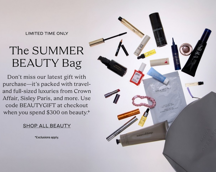 Get a free 20-piece beauty gift with purchase when you spend $300 on beauty use promo code BEAUTYGIFT, worth over $500.