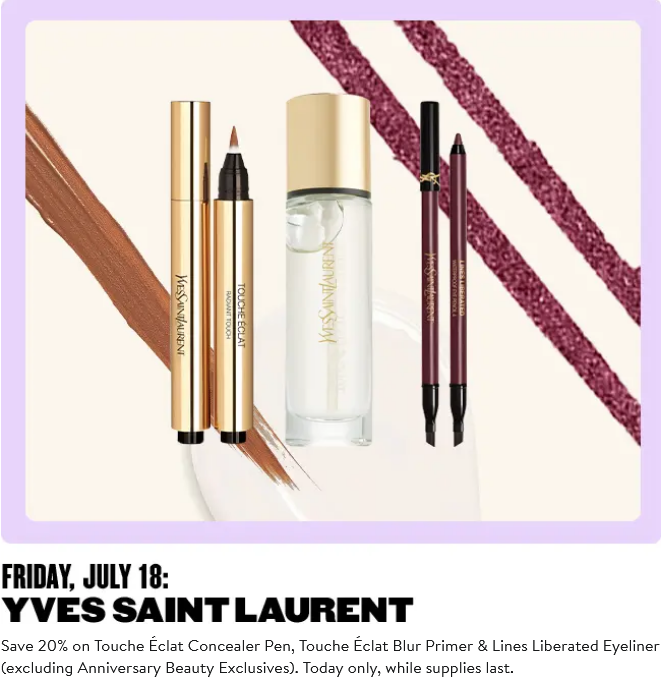 NORDSTROM (NEW) Nordstrom Anniversary Daily Beauty Deals are now live through Aug 3. Today you can get 20% off select YSL. Explore 100+ Nordstrom beauty gift with purchase. Nordstrom Anniversary Sale Beauty Exclusive Deals (384 items).