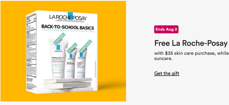 - Free 3 Piece La Roche-Posay Gift with $35 skincare purchase.