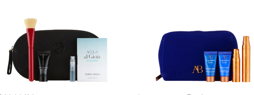 Receive a cosmetics bag, a mini Foundation Brush and deluxe samples of Luminous Silk Hydrating Primer (0.16 oz.) and Acqua di Gioia Eau de Parfum (0.04 oz.) with your $100 ARMANI beauty purchase.