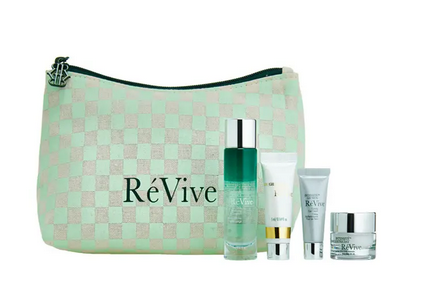 Receive a cosmetics bag and deluxe samples of Enzyme Essence Daily Resurfacing Treatment (0.47 oz.), Brightening Serum Vitamin C + Niacinamide + Bio-Renewal Peptide (0.16 oz.), Intensité Les Yeux Firming Eye Cream (0.1 oz.) and Intensité Crème Lustre Day Firming Moisture Cream SPF 30 (0.17 oz) with your $250 RéVive® purchase. A $147 value.